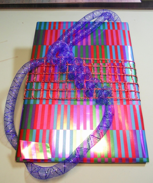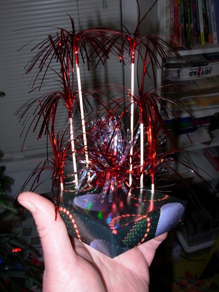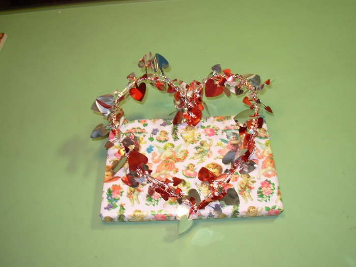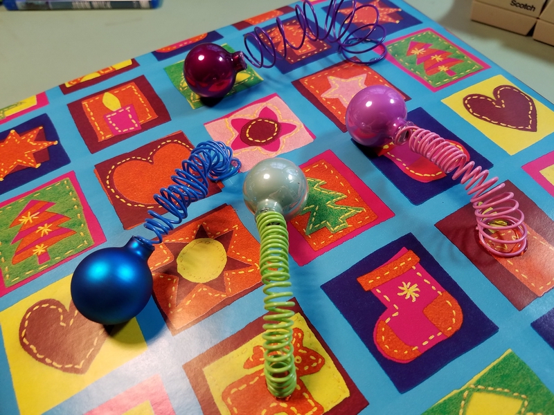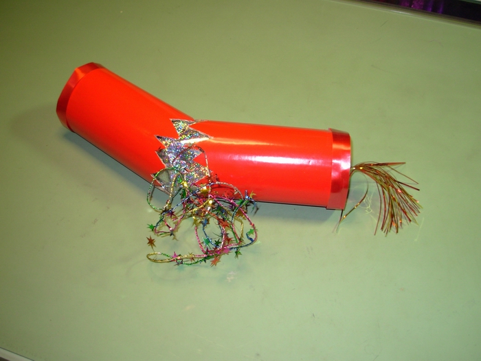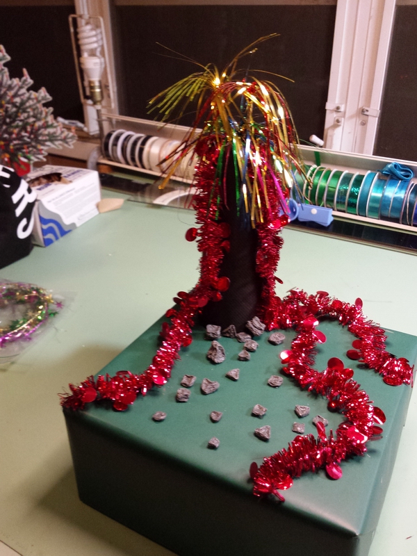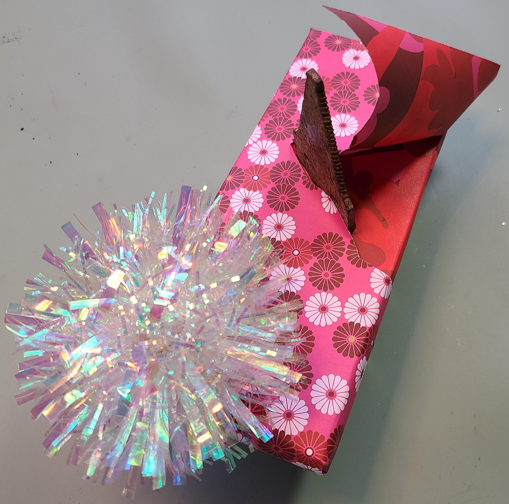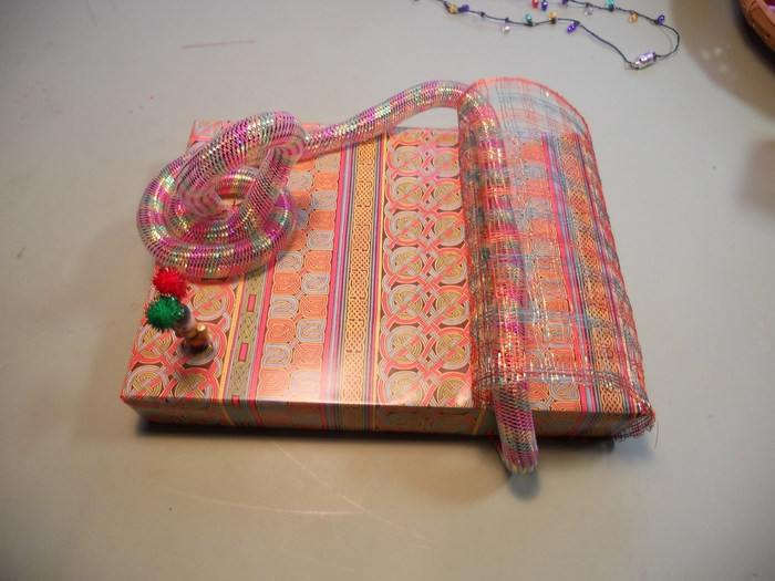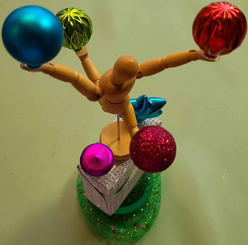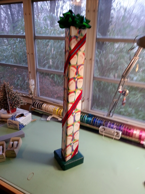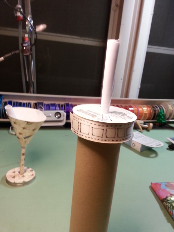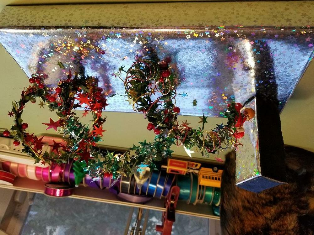 Prep: waiting for the glue-gun glue to set for one end of the wavy soaring thingy...