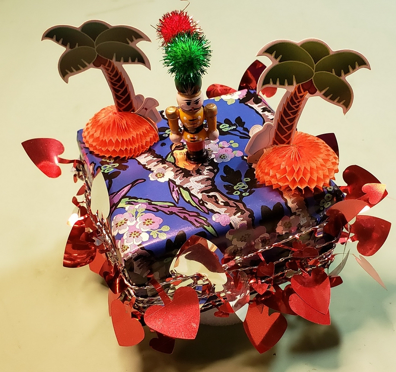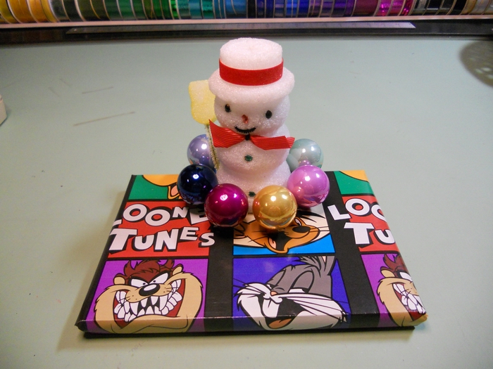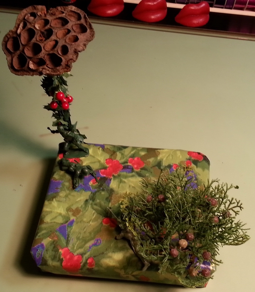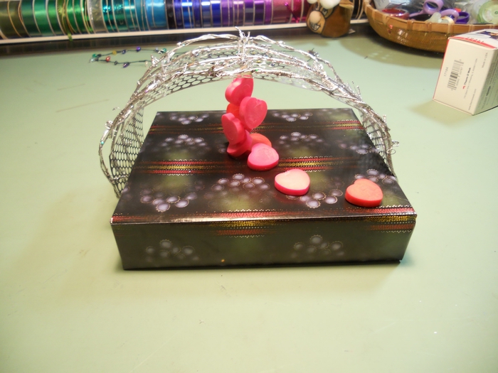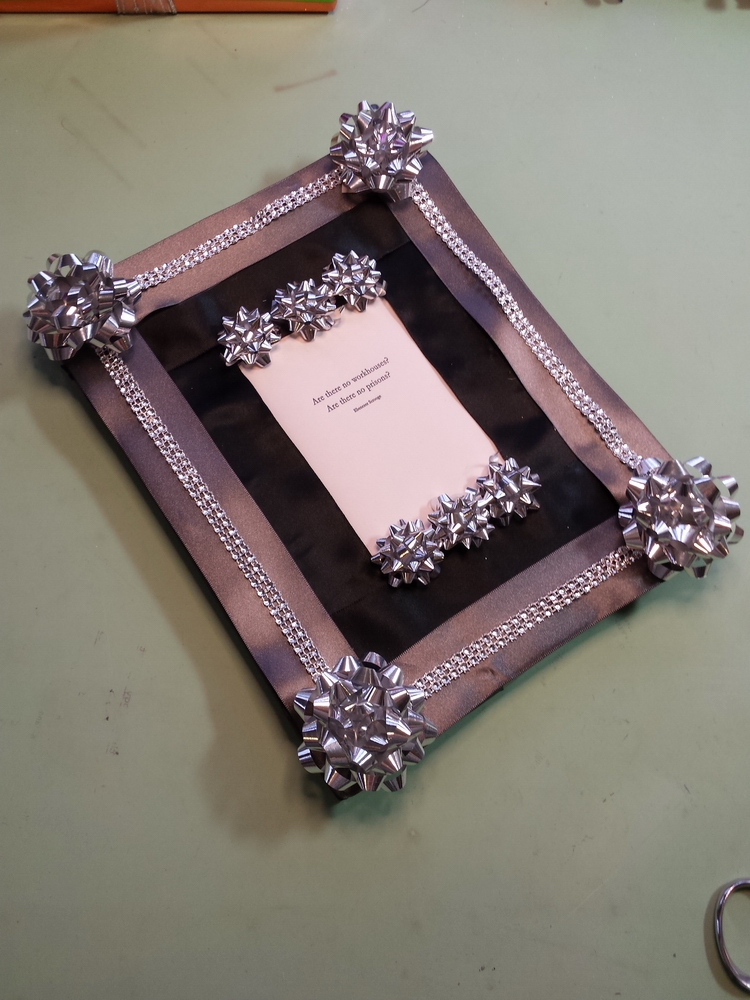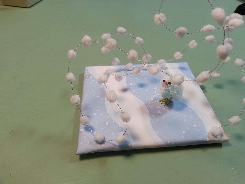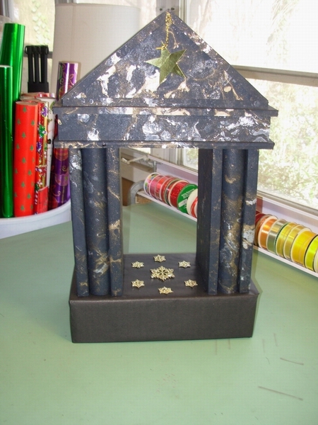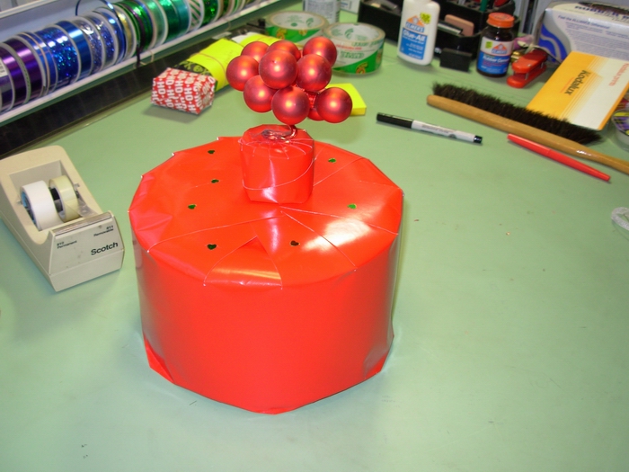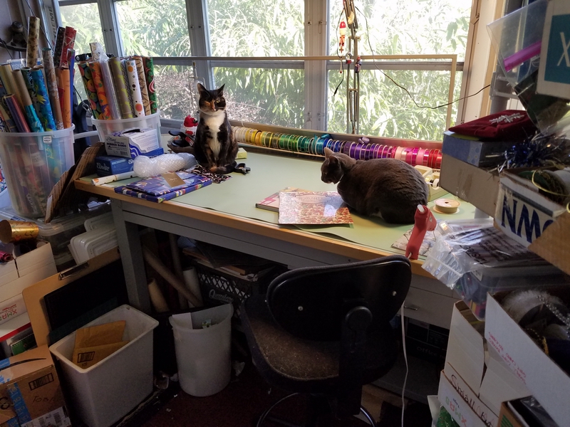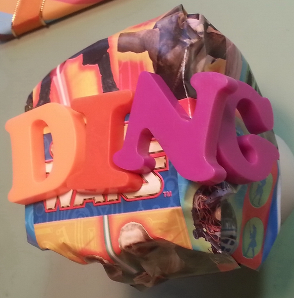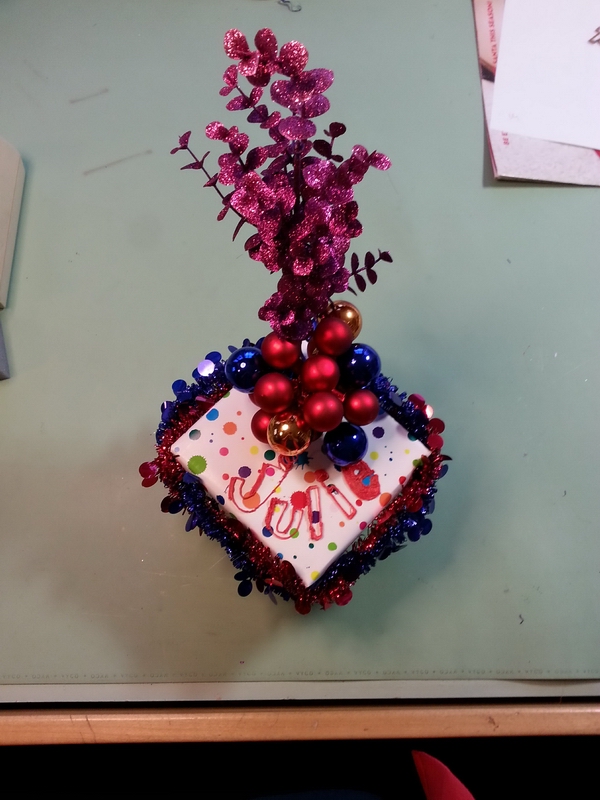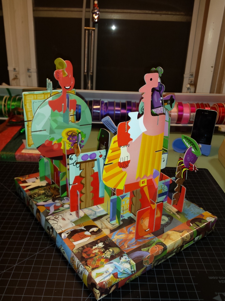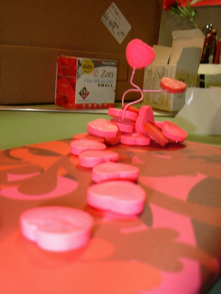 Prep: waiting for the glue-gun glue to set for one end of the wavy soaring thingy...