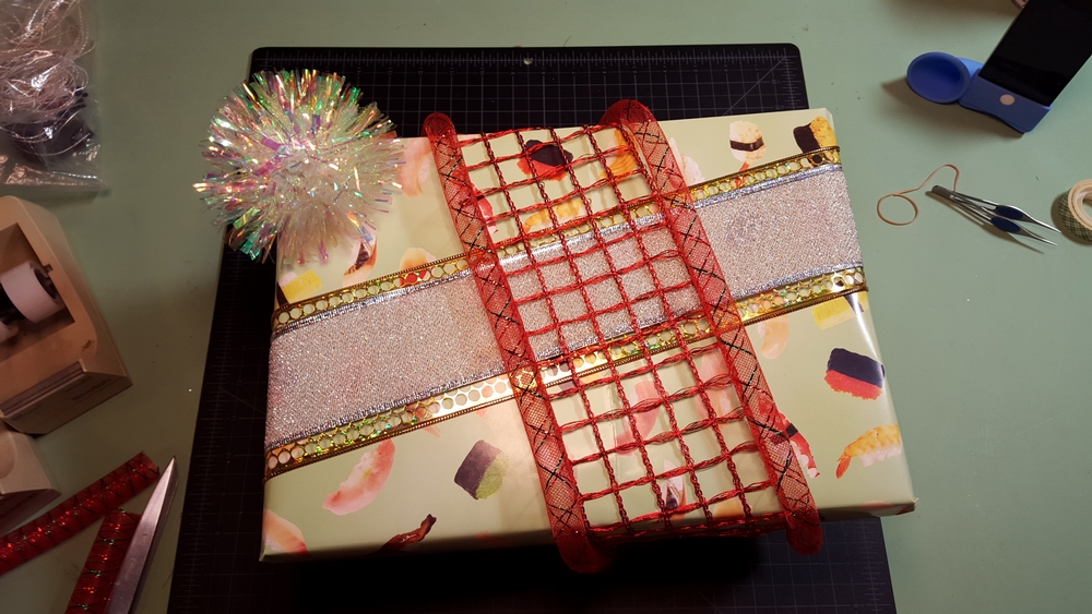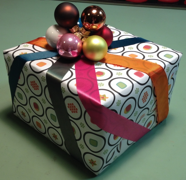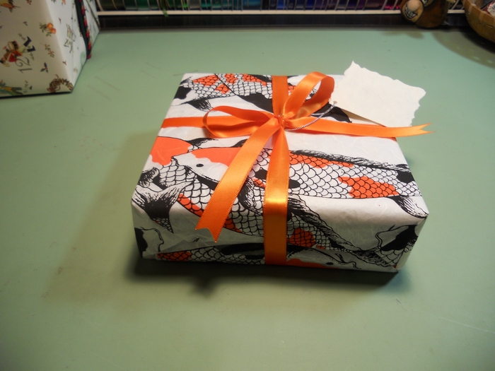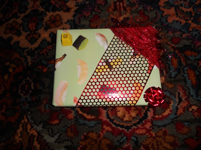 Hmmm, interesting package with sushi wrapping paper...