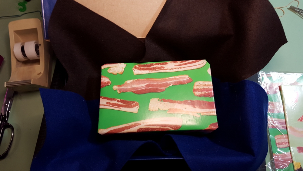 Inside that, another package, wrapped in cooked-bacon paper...
